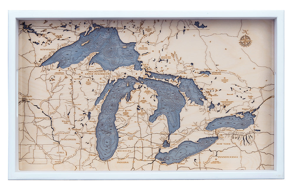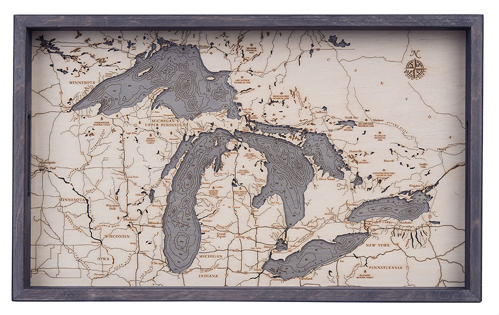 Great Lakes Wooden Topographical Serving Tray