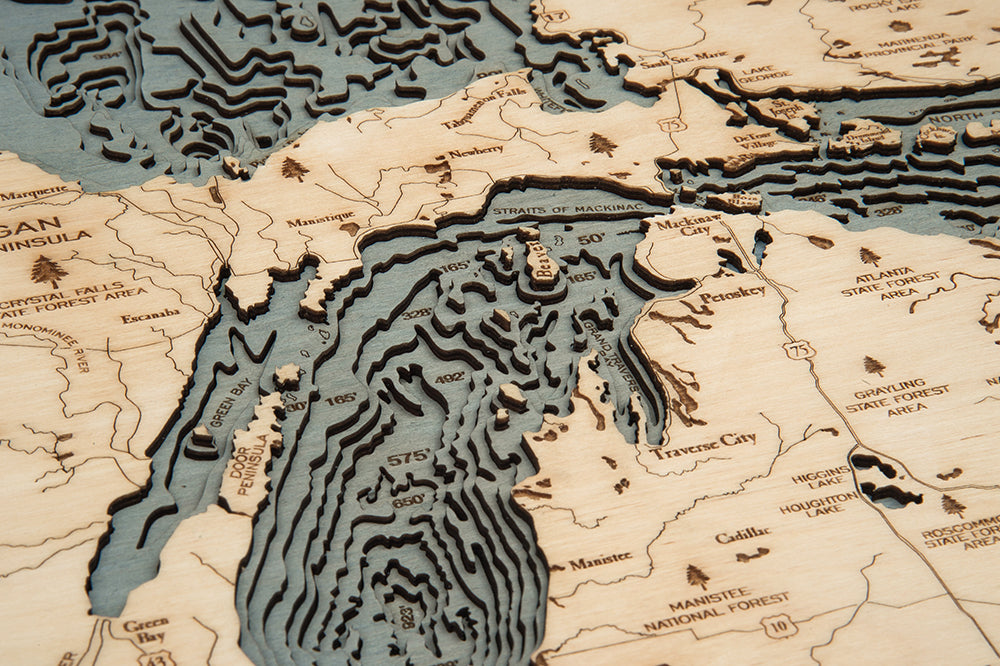 Clean depth layering, precise shorelines, and a natural wood finish make this piece a standout in any room. It also makes a thoughtful gift for lake lovers, boaters, and anyone connected to the Great Lakes.